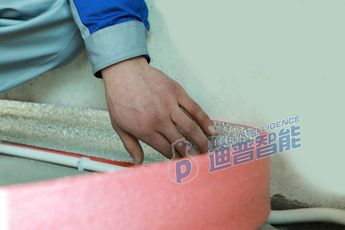 第一步:鋪設(shè)邊界保溫條。我們公司定制的邊界保溫條以EPE珍珠棉主要材料,顏色為粉紅色。鋪設(shè)邊界保溫條主要是為了減少地暖熱量的流失。它不僅可以減慢由地面受熱而導(dǎo)致的水泥蓄熱層膨脹,防止墻面水泥層卷起;而且能夠阻擋水泥沿著邊縫往下流淌,以免出現(xiàn)材料浪費或后期出現(xiàn)地面咯吱聲。所以,鋪設(shè)邊角保溫條是非常有用的。
