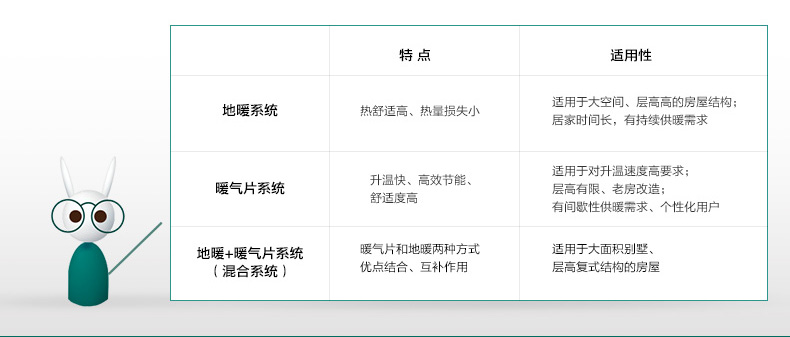 由于散熱片和地暖系統(tǒng)的不同特點,在選擇時客戶可根據(jù)自己的家庭人口情況、使用的習(xí)慣、使用的時間、對溫度的要求選擇適合自己的供暖形式,如家里有老人、小孩,暖氣需要長期開,地暖可能更舒適,如有的家庭是早出晚歸,在家時間并不長,選擇散熱片升溫快,使用費用也好控制等等。